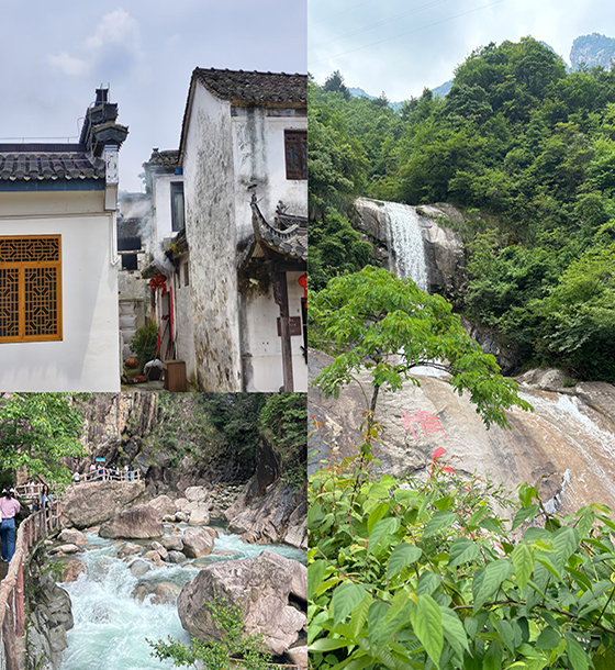 首日行程,团队首赴家朋乡烈士陵园,在许家朋烈士纪念碑前重温入党誓词,缅怀中国人民志愿军许家朋烈士,传承红色基因,感悟英烈精神。铮铮誓言回响在“皖浙天路”的崇山峻岭间。这条盘山公路以弯道串联起云海、奇峰与古村落,成员们在九曲回环中既领略了地质奇观,更体悟到新时代的“愚公精神”。午后,团队徒步探寻了国家级自然保护4A景区——鄣山大峡谷,在奇石、秀水、珍稀植物中见证自然界的鬼斧神工,在徽杭古道之间,触摸历史年轮,体会商道文明。