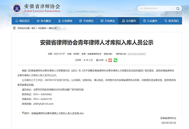安徽省律师协会青年律师人才库是依据《安徽省律师协会青年律师人才库管理办法(试行)》建立的重要人才培养平台,旨在优化安徽省律师队伍结构,聚焦专业化发展和业务创新,着力培养后备领军人才,提升行业整体引领力。
