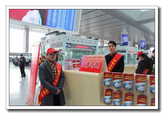 本所汪明月、周睿两位青年律师志愿者根据活动安排在二楼候车厅开展法治宣传及法律咨询活动,先后发放法治宣传册200余册,积极答复旅客的法律咨询、提供便民服务,并担负起导乘指引、秩序维持等服务。志愿活动传播了正能量,取得了较好的宣传效果。