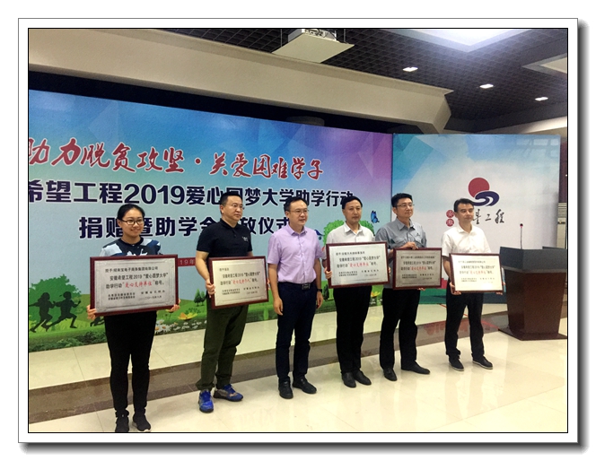 8月27日下午,“助力脱贫攻坚 关爱困难学子”安徽希望工程2019“爱心圆梦大学”助学行动捐赠暨助学金发放仪式在合肥举行。