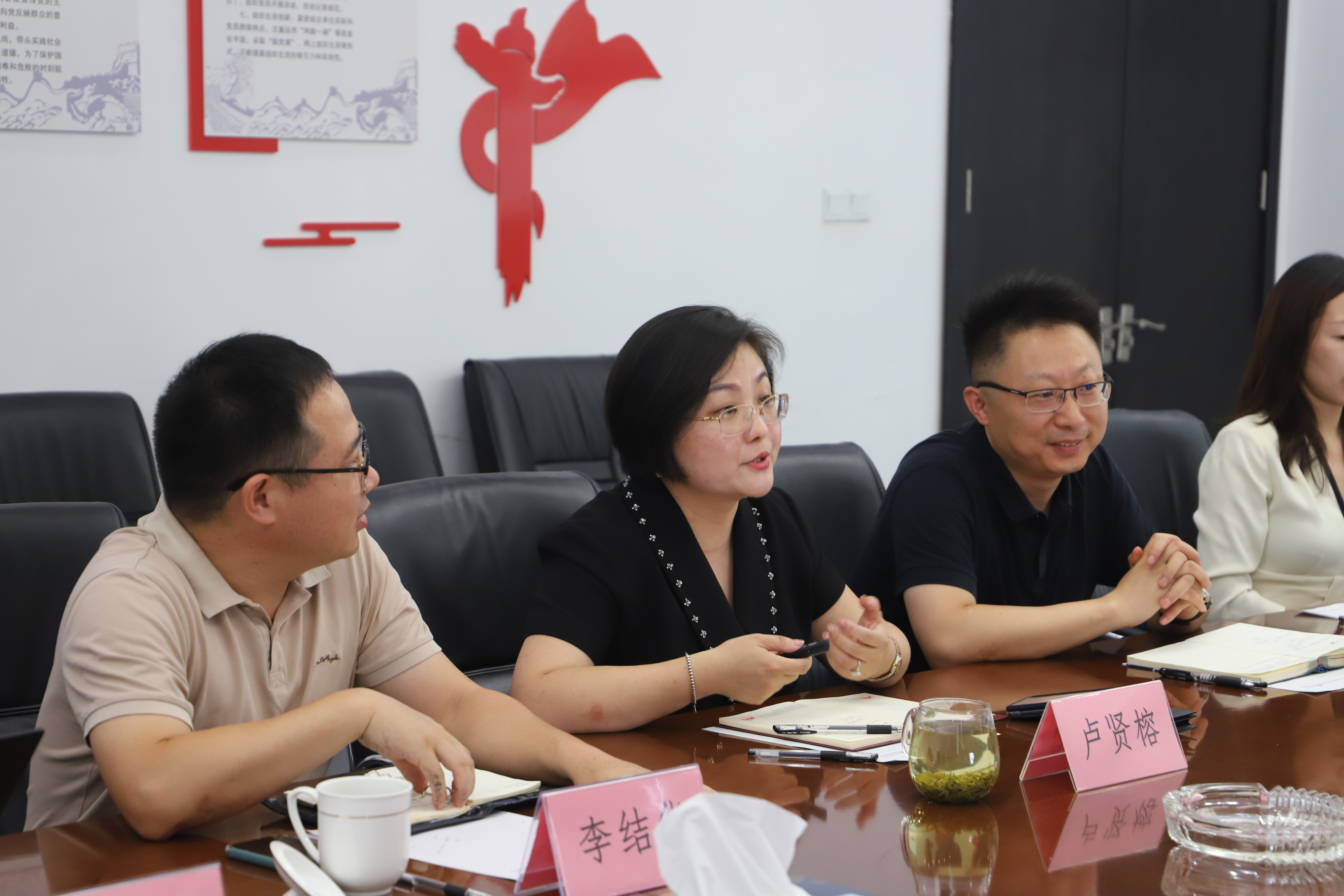 2022年7月27日下午,安徽省知识产权事业发展中心副主任、一级调研员毕清及二级调研员陶平、俞纯等人一行莅临天禾律所调研,天禾律所主任卢贤榕、知识产权部门负责人陈军、合伙人李结华、张文苑、律师杨轶参与了接待工作。
