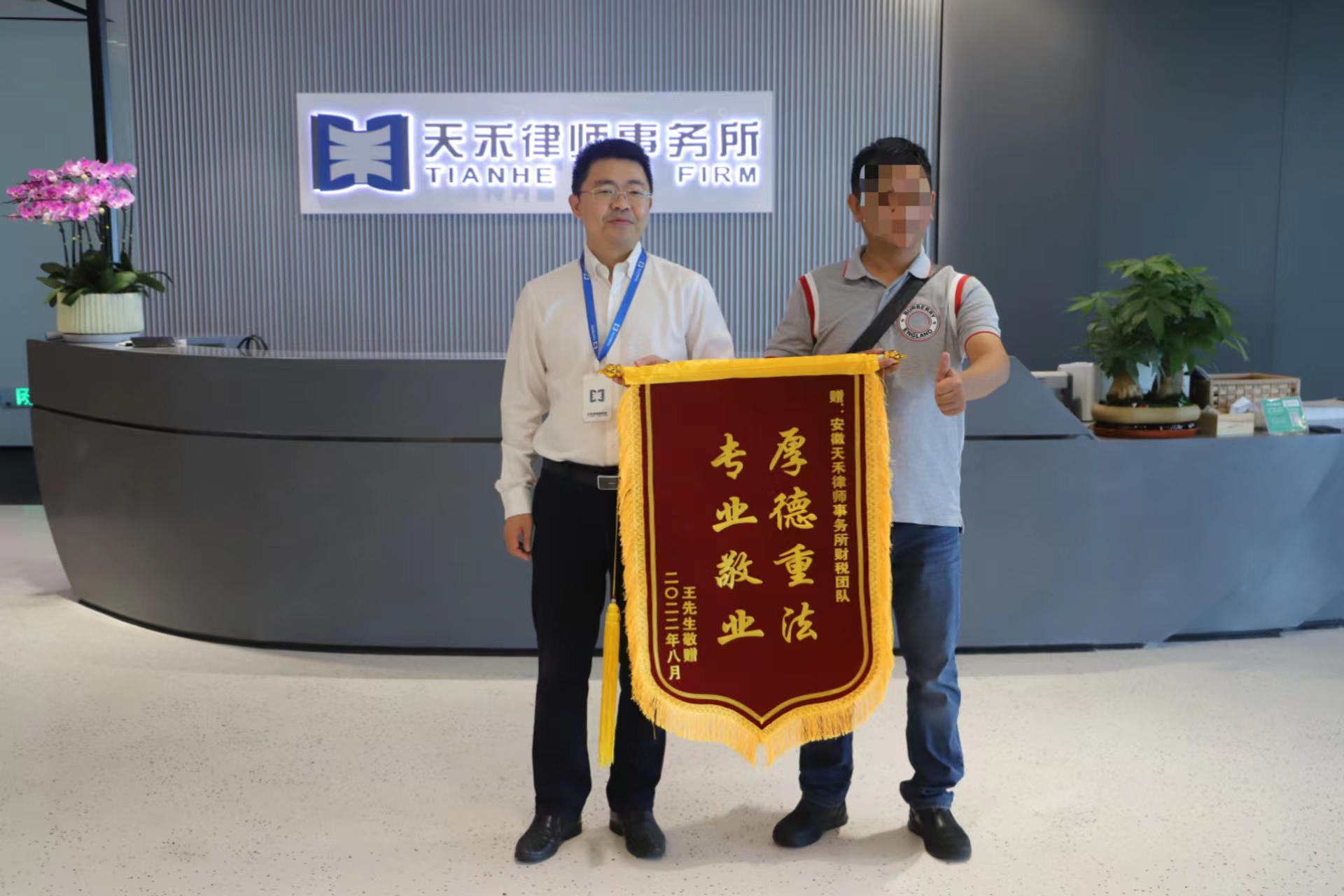 2022年8月30日,客户王某前来天禾律所赠送锦旗,感谢与财税团队相遇。原来王某涉嫌一起涉税刑事案件,并已认罪认罚,天禾财税团队接受委托后,面对复杂的案情与不利的量刑建议,通过层层抽丝剥茧,用事实与证据说服检察机关最终作出不起诉决定。