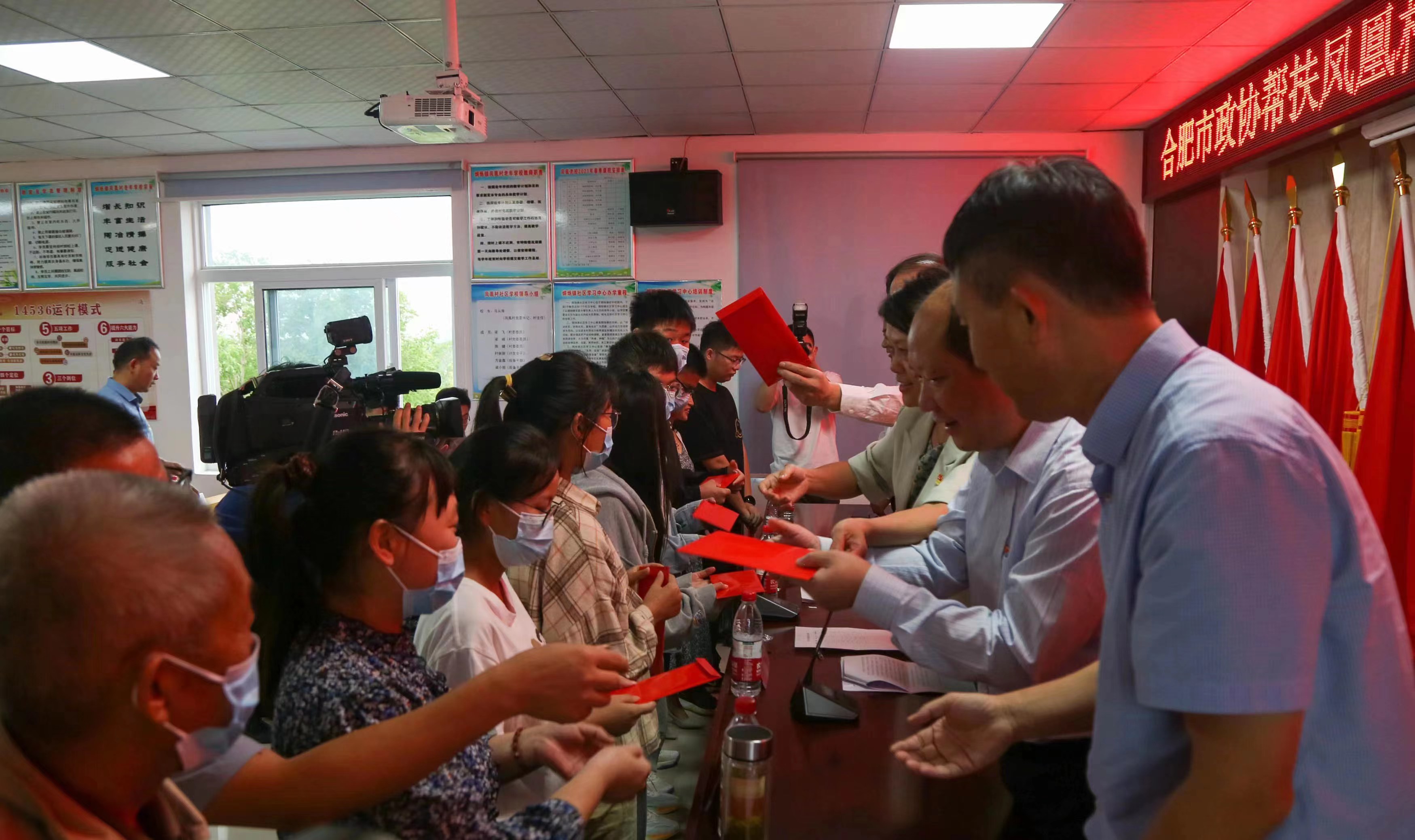 捐资助学仪式中,各委员企业家积极奉献爱心,为凤凰村即将入学的十一名