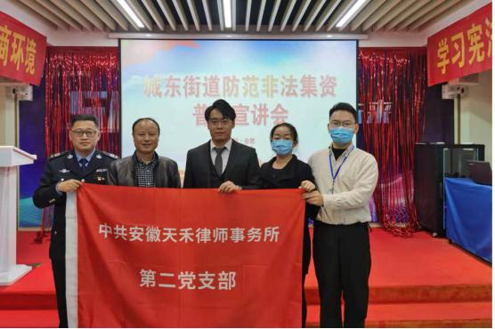 2021年12月7日,应瑶海区城东街道邀请,天禾所第二党支部书记梁树华带队组织了杨明君、孙飞飞、高宁四位律师参与了城东街道举办的“宪法宣传周暨瑶海区高质量发展政策宣讲会”活动,并就企业在合同签订及履行中遇到的痛点、难点,有针对性地开展了《民法典·合同编》普法专题讲座,为合肥物联网产业园区众多参会企业代表解读民法典合同编的相关法律规定。